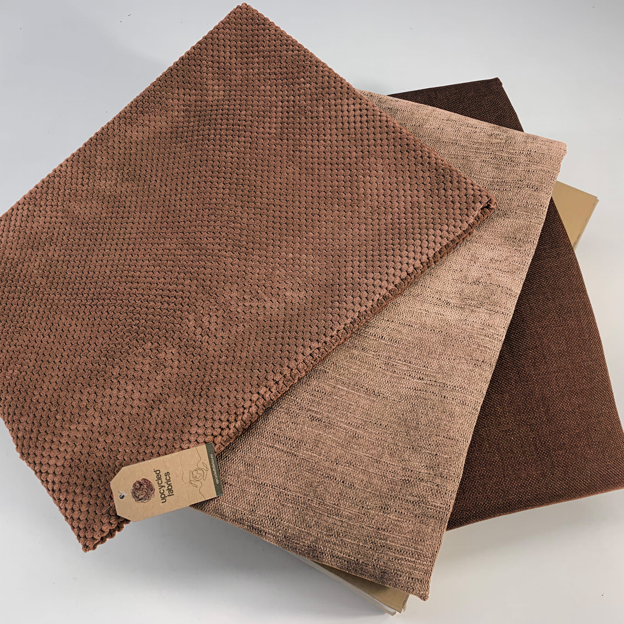 DUŻE FRAGMENTY TKANIN OBICOWYCH POSIADAJĄCYCH CERTYFIKAT UPCYCLED FABRICS- WYTRZYMAŁE, PEŁNOWARTOŚCIOWE.